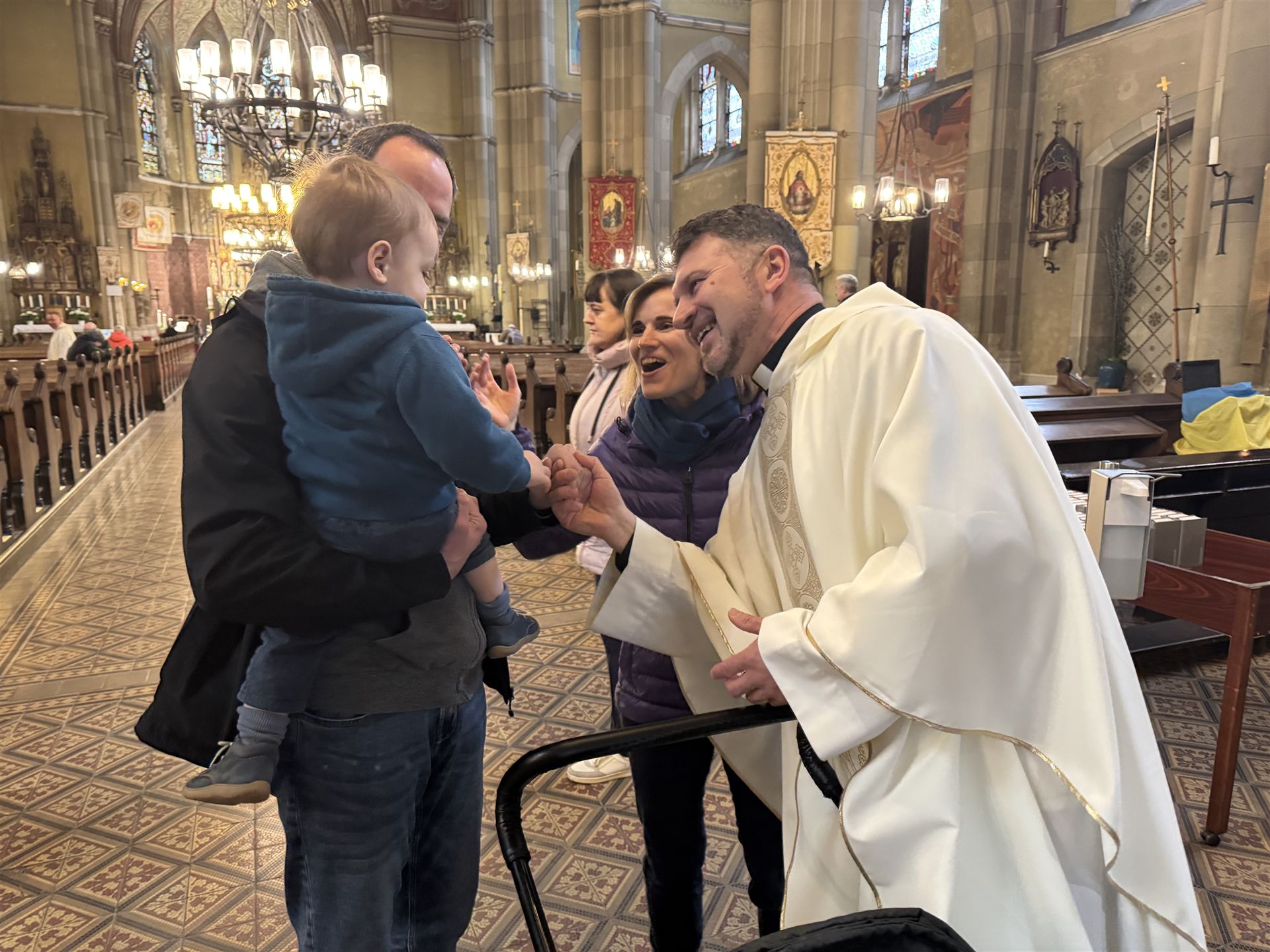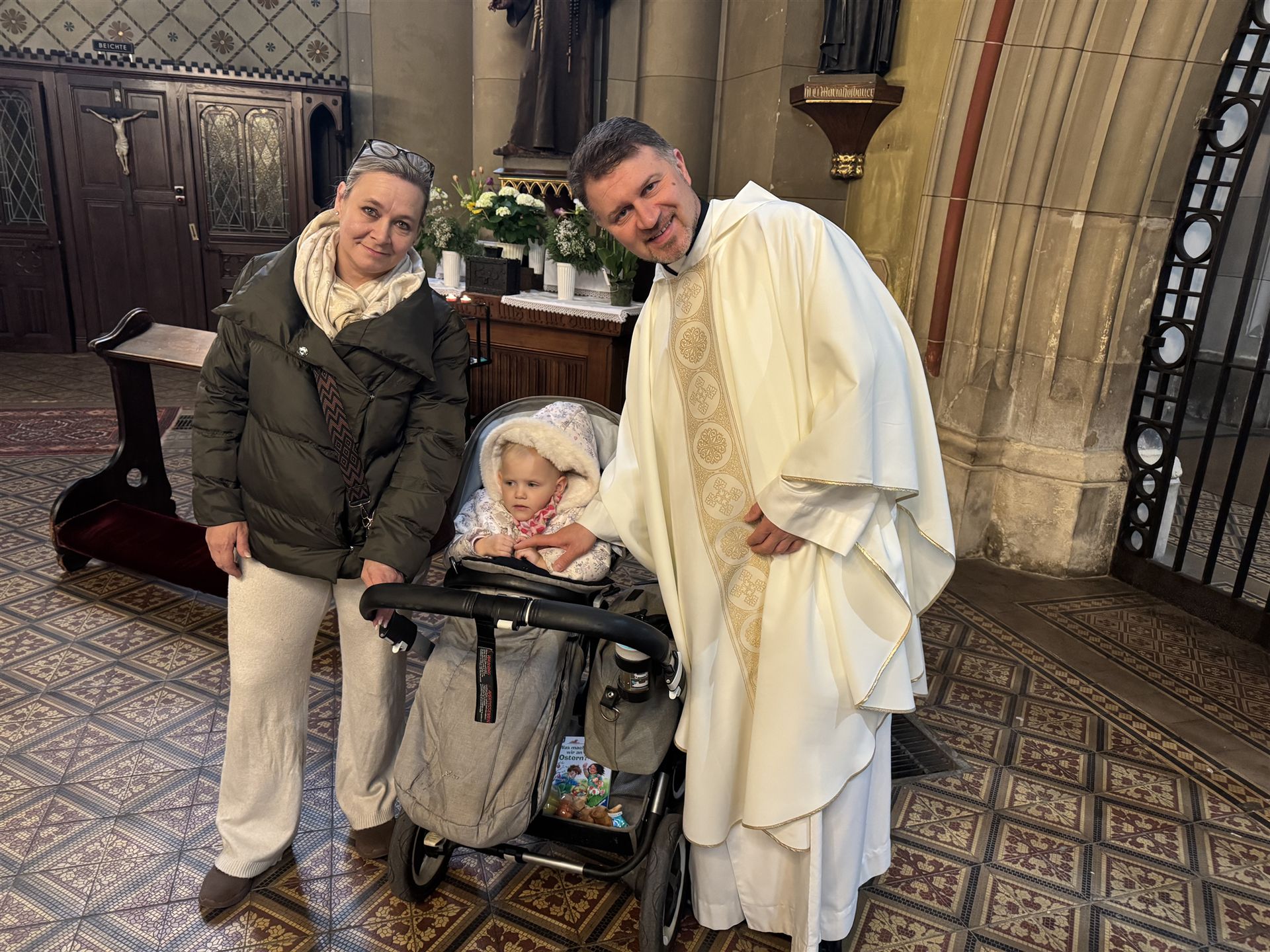 Am 12. April fand die Kindersegnung der neugetauften Kinder statt. Zu dieser Feier waren insgesamt zehn Familien eingeladen, jedoch nahmen leider nur zwei Familien teil. Trotz der geringen Teilnehmerzahl war die Feier würdevoll und von einer ruhigen, persönlichen Atmosphäre geprägt. Die anwesenden Familien konnten die Segnung ihrer Kinder bewusst und intensiv erleben, was der Feier eine besondere Tiefe verlieh.
