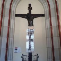 Am 29. März 2014 hat ein - wie sich später herausstellte - verwirrter Einzeltäter unser großes Kruzifix im Eingangsbereich zerstört.
